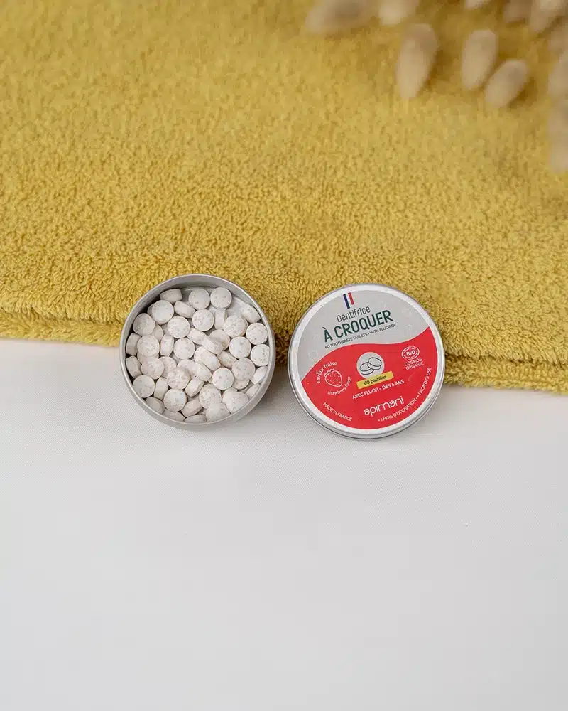 Un sachet hermétique, de 120 pastilles pour recharger sa boîte de dentifrice préféré. Le même dentifrice, 120 pastilles au délicieux goût de fraise, fait de chaque brossage un moment ludique, gourmand et sain et certifié bio. Plus de plastique inutile dans votre salle de bain, vous avez entre les mains le futur du dentifrice.