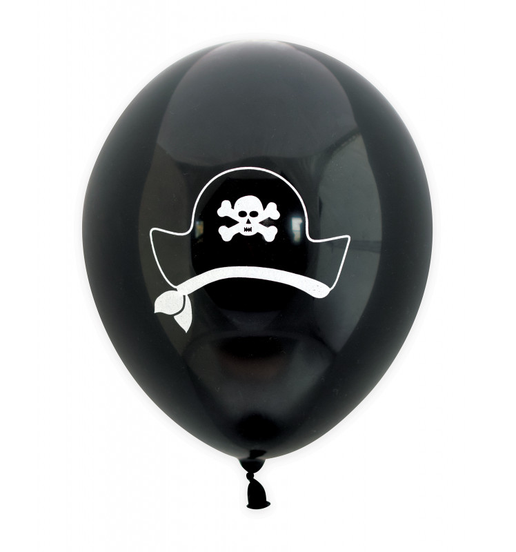Lot de 6 ballons noirs avec motif chapeau de corsaire/pirate