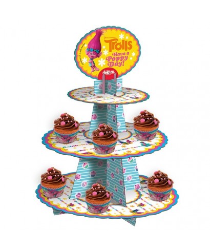 Ce présentoir à cupcake des Trolls peut contenir jusqu’à 24 cupcake et à monter sois même.