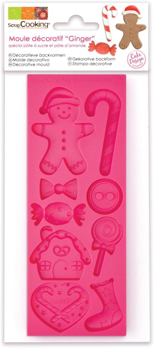 Moule en silicone pour réaliser des décors de Noël avec la pâte à sucre ScrapCooking . Matière : Silicone apte au contact alimentaire Dimensions : 16 x 6 x 0,8 cm Entretien : avant la première utilisation et après chaque utilisation, lavez à l’eau chaude et essuyez. Précautions d’emploi : ne pas mettre le moule en contact avec une flamme ou sur une plaque électrique. Ne pas utiliser d’outil tranchant.