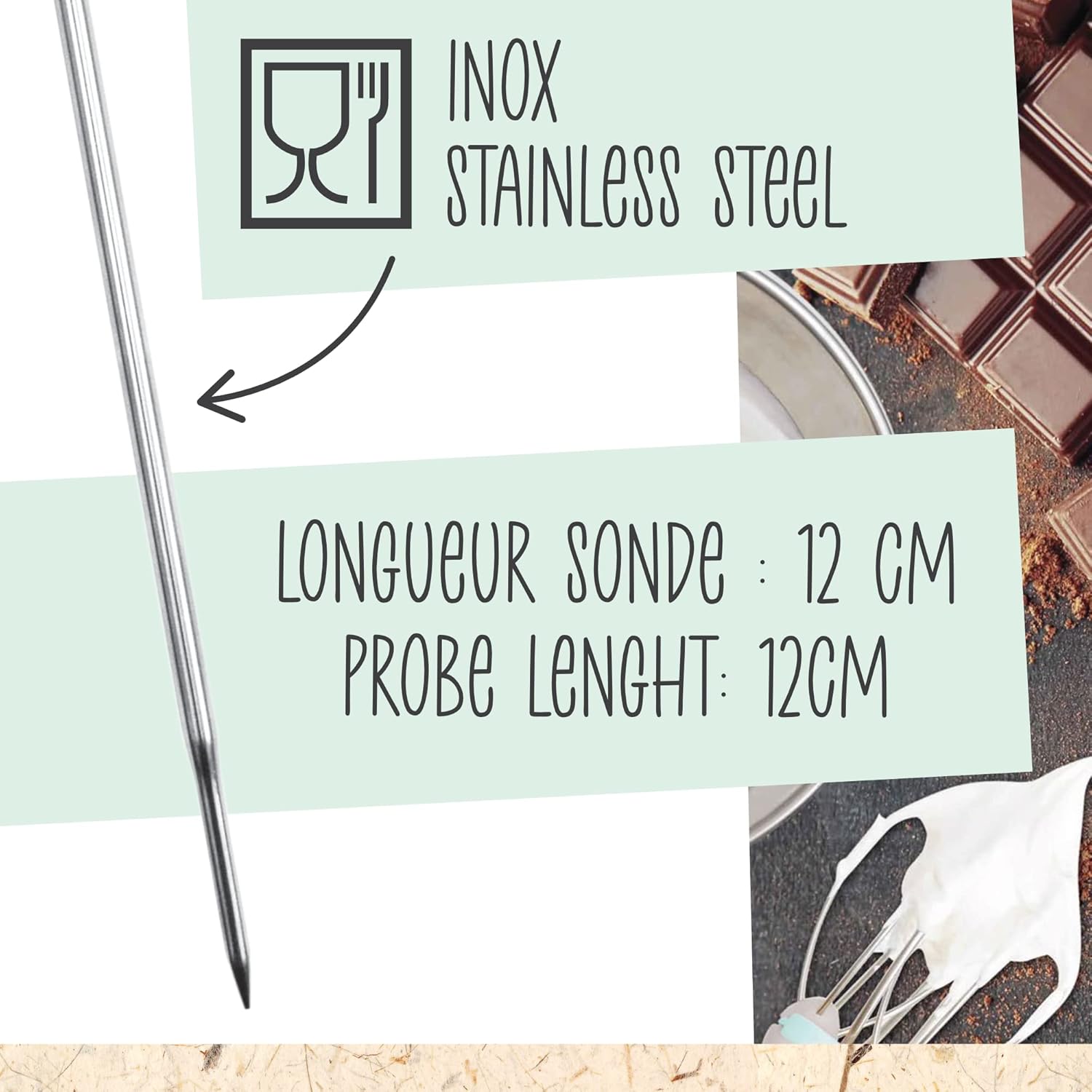 Matière : Sonde en inox 18/8 apte au contact alimentaire.